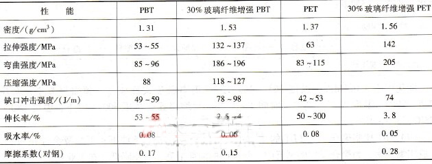 增強(qiáng)材料的耐熱性和耐熱老化性更好,而PBT熱老化和耐光老化性能優(yōu)異。
