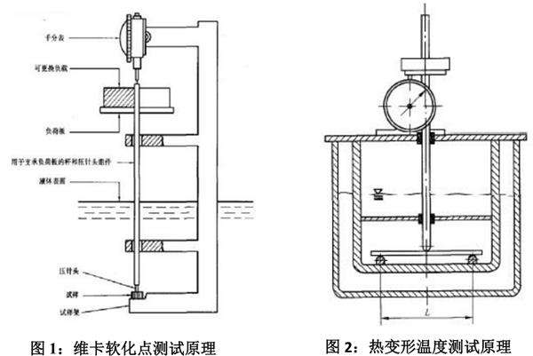 PVC粒料制成的塑料制品維卡軟化溫度檢測試驗(yàn)裝置與塑料制品的熱變形溫度檢測試驗(yàn)裝置基本相同。