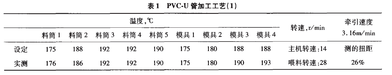 擠管生產(chǎn)中,管材的各項機械物理性能均與擠管過程的工藝控制有關(guān)。合理的工藝設置方能使PVC混合料形成具有一定塑化度并且塑化均勻的熔體,因而管材的縱向回縮率也與工藝控制有關(guān)。筆者從以下兩方面論述。