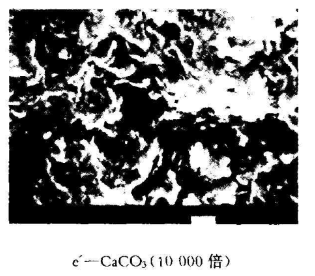 隨著CaCO。用量的增加,PVC/CPVC合金的拉伸強(qiáng)度、彎曲強(qiáng)度、斷裂伸長(zhǎng)率總體上來講均呈先上升后下降的趨勢(shì)。三者在添加5份活性CaCO3后,達(dá)到較大值,然后隨著活性CaCO3用量的繼續(xù)增加,開始下降。當(dāng)活性CaCO3用量達(dá)到20份時(shí),三者分別為較大值時(shí)的81% 、84%和69%。體系的沖擊強(qiáng)度隨著活性CaCO3用量的增大出現(xiàn)了上下波動(dòng),但基本維持在13 kJ/m2左右。熱變形溫度在活性CaCO3用量為5~1 5份時(shí)變化不大,但當(dāng)活性CaCO3用量超過10份時(shí),熱變形溫度上升。