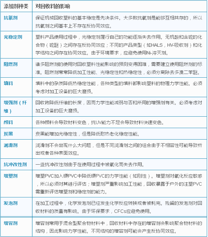 一張表看懂助劑對(duì)回收塑料的影響